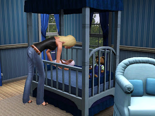 she went to the 3rd floor where the baby nursary was and put her babys in the crib there was also a door so she could walk from her bedroom into it